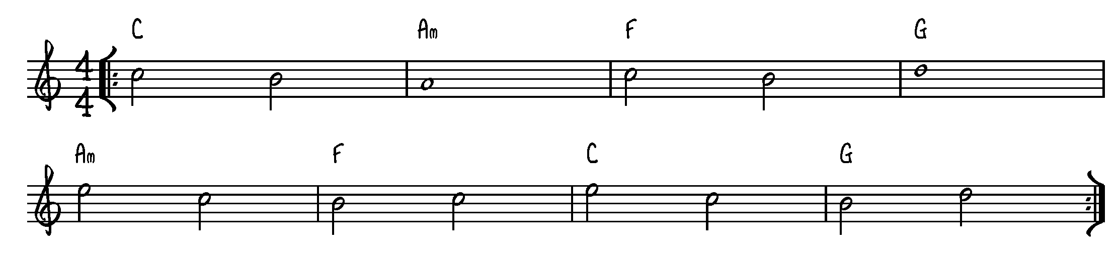 The exercise are being repeated: First time with the melodi, second time only backing track.