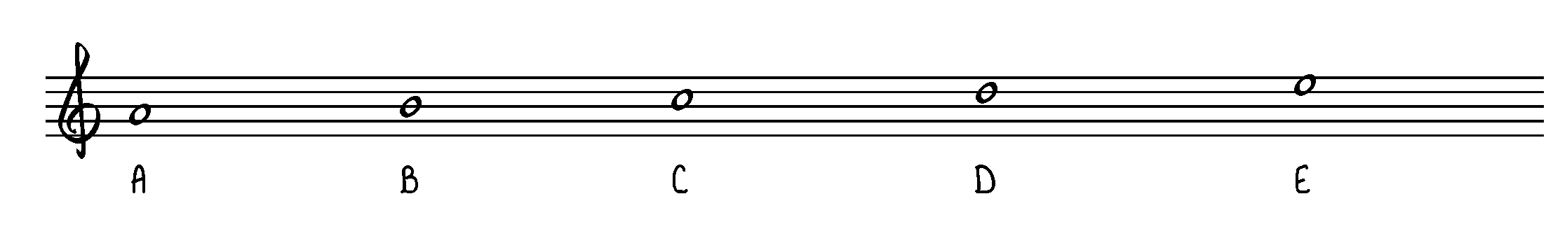 I dette afsnit skal du læse og spille 3 toner: A, B, C, D og E.