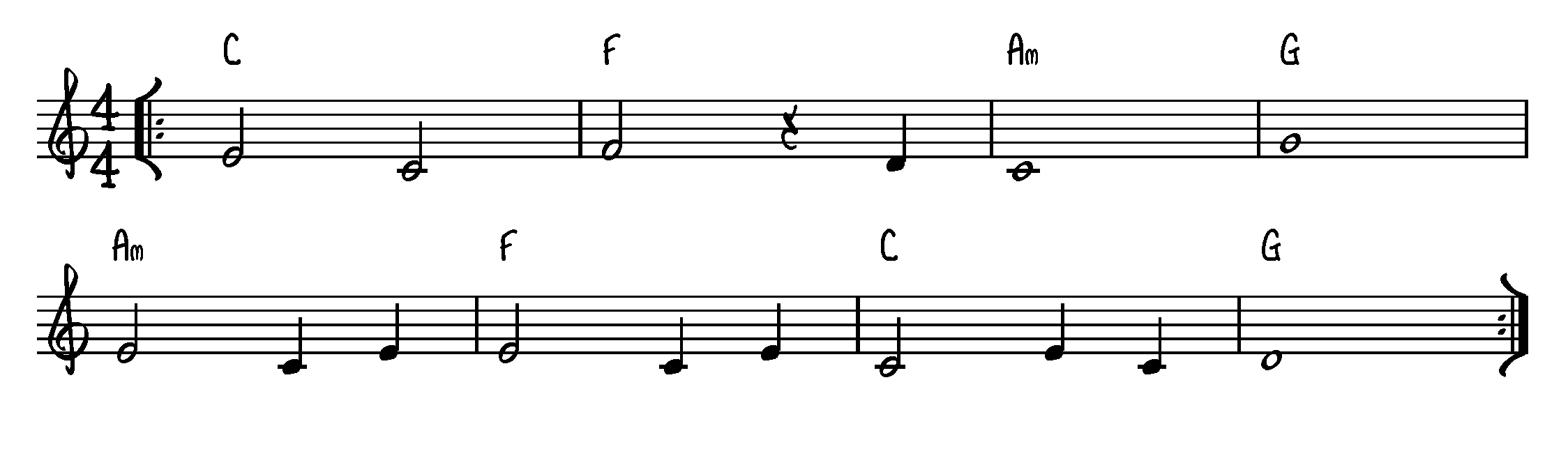The exercise are being repeated: First time with the melodi, second time only backing track.