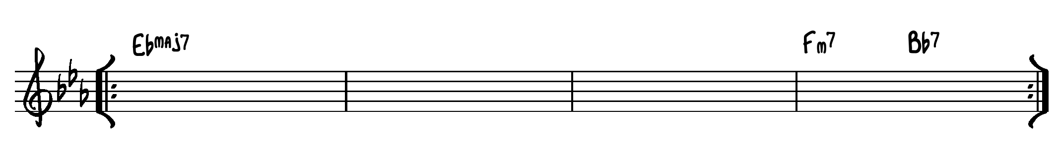Akkorderne er noteret som firklange, men kan være udvidet.