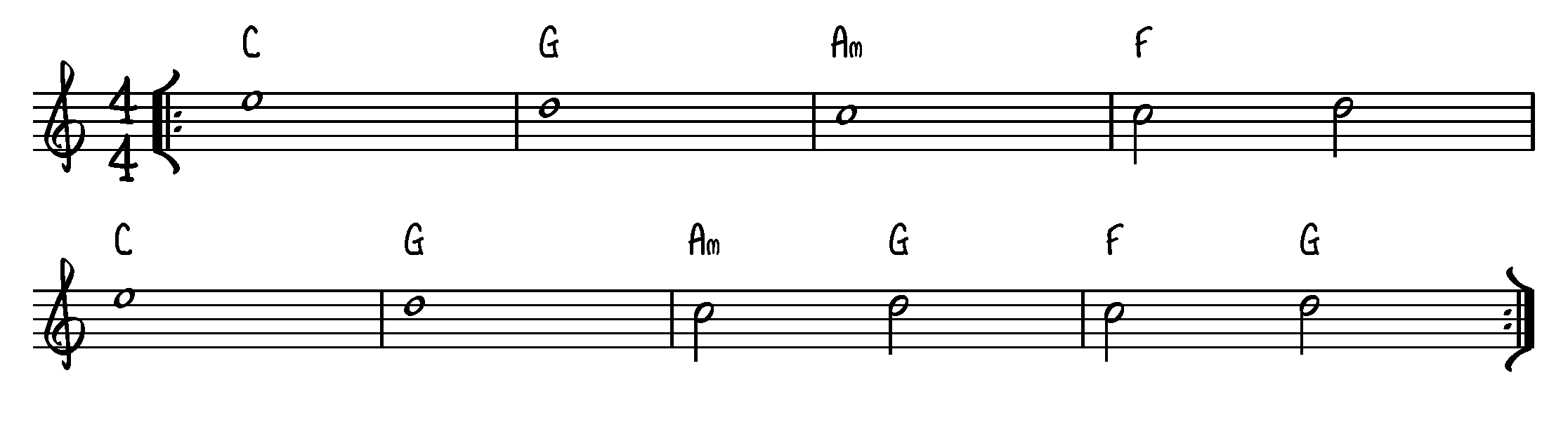 Rytmeværdier: 1/1- og 1/2 noder.