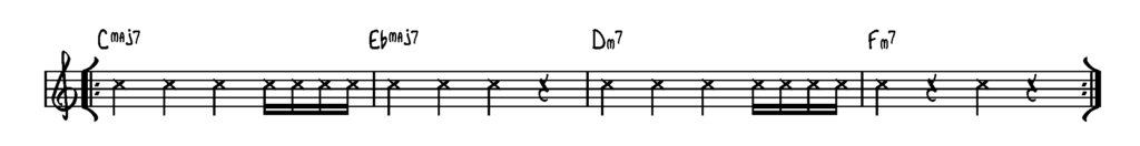 16´dele er 4 lige lange toner afviklet på 1/4 – eller på 2 lige 1/8